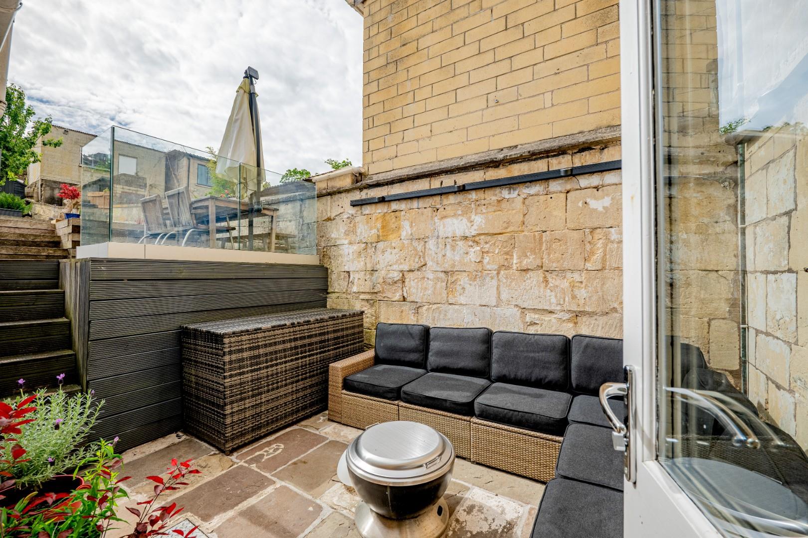 Outside, the rear garden has been thoughtfully landscaped to create three distinct seating areas and a lawn, offering a tranquil space for outdoor entertaining. At the rear, there's direct access to the scenic Kennet & Avon Canal towpath—perfect for leisurely strolls or morning runs. Permit parking is available on the street, completing this exceptional offering in one of Bath’s most desirable locations.