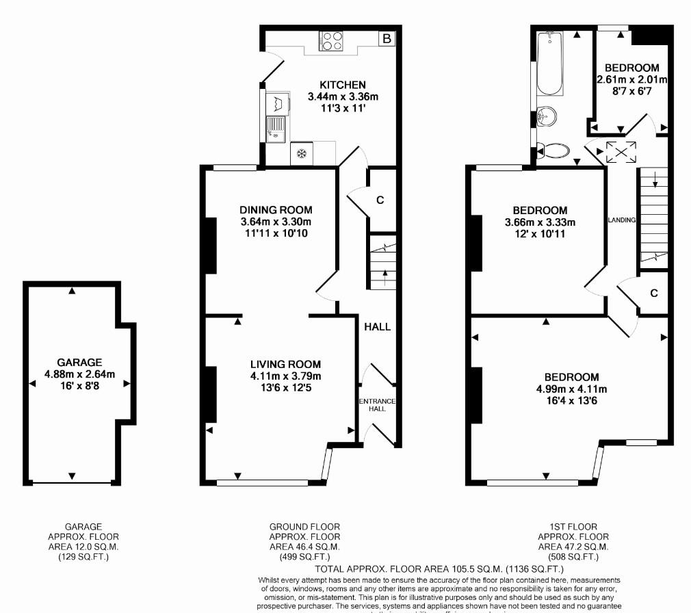 Upstairs, the property features two larger-than-average double bedrooms, both bright and versatile, along with a third smaller bedroom, ideal as a nursery, guest room, or home office.