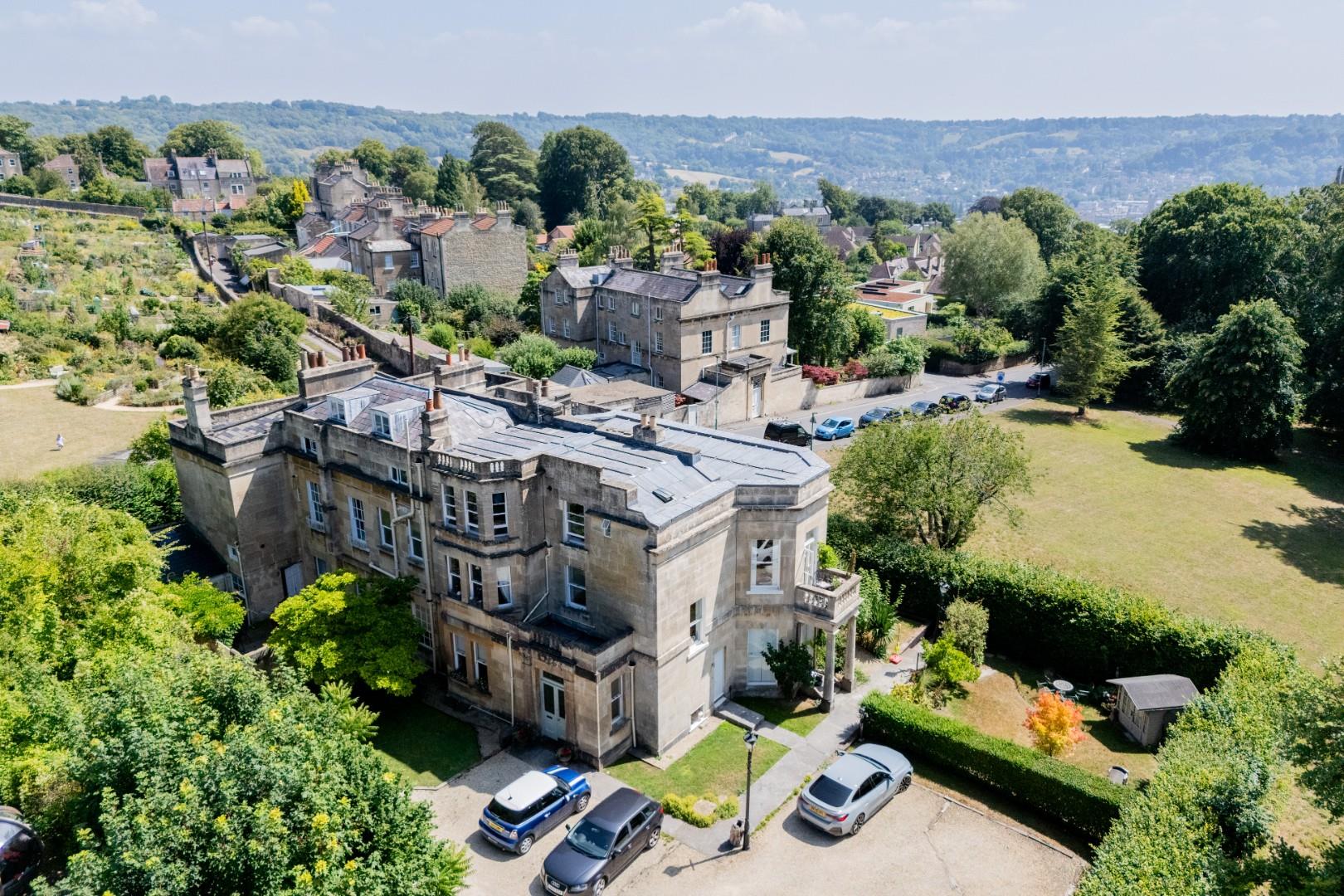 Perched on the elegant northern slopes of Bath, Flat 4 at Northfield House is a beautifully appointed first-floor apartment that effortlessly combines classic period charm with contemporary comfort. Situated within a distinguished Grade II listed building just a short stroll from the city’s historic heart, this exceptional home enjoys a peaceful setting with elevated views across well-tended gardens and the city beyond. The spacious interior features two well-proportioned double bedrooms, including a luxurious principal suite with a private en-suite bathroom. Two further bathrooms provide ample convenience for guests and family alike. At the heart of the home is a stunning light-filled living room, where French doors open to reveal tranquil garden vistas—a perfect space for both relaxation and entertaining. The adjacent kitchen and dining room is elegantly designed and fully equipped, offering generous storage, quality appliances, and a welcoming space for gatherings. The property is further enhanced by access to beautifully maintained communal gardens, ideal for peaceful outdoor moments, and includes the rare benefit of allocated off-road parking.